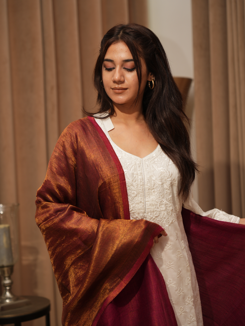 Karivani Women's Faux Pashmina Stole - Jama Zari Stole Karivani Women's Faux Pashmina Stole - Jama Zari Stole